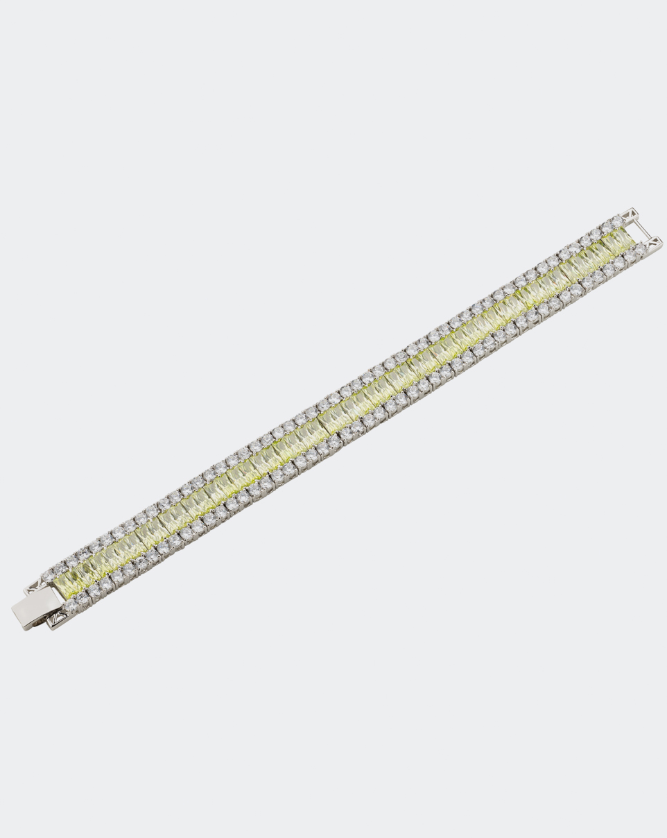 Bracelet in brass, rhodium-plated with round and baguette zirconia stones.