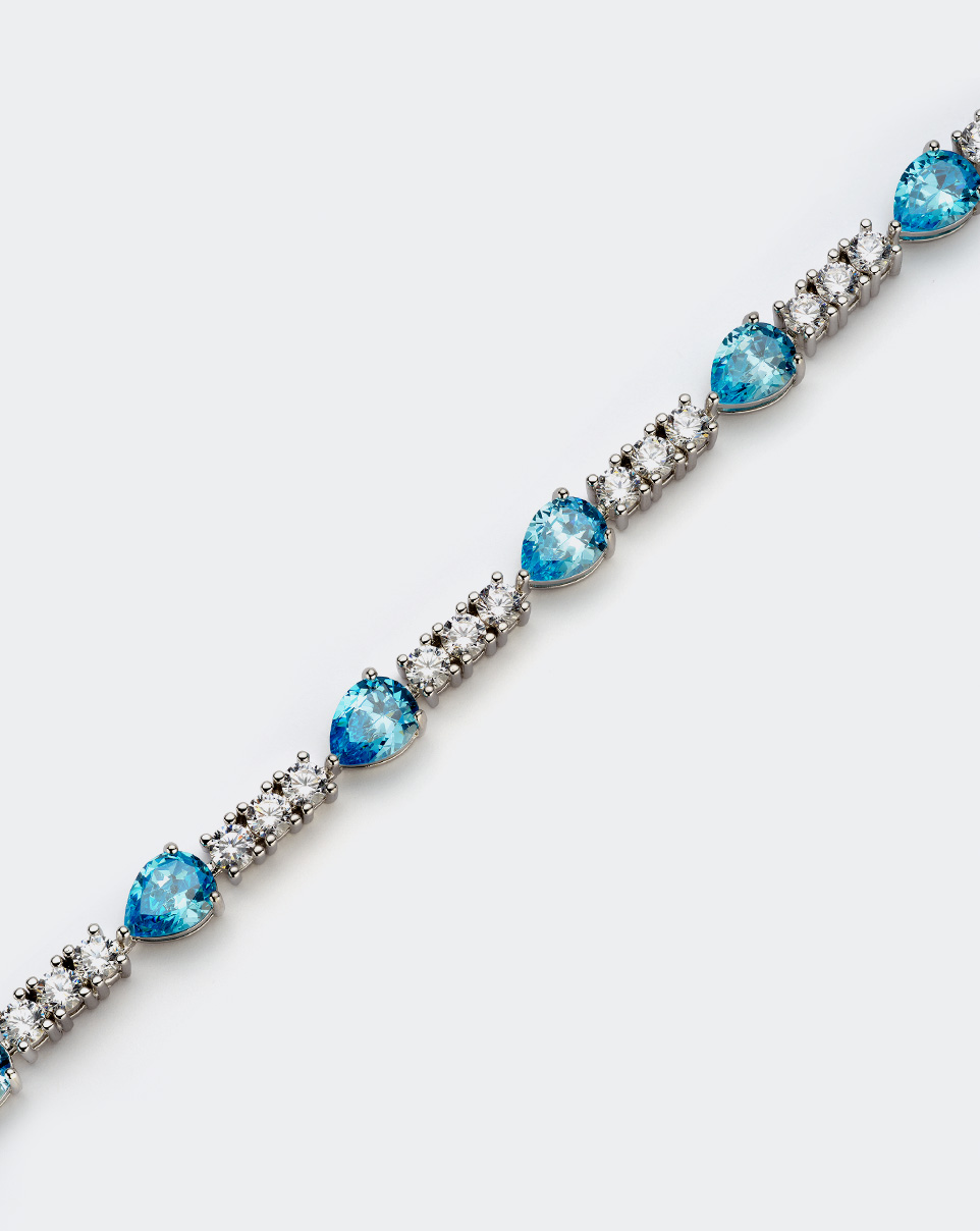 Armband in Messing, rhodiniert mit tropfenförmigen und runden Zirkonia-Steinen.