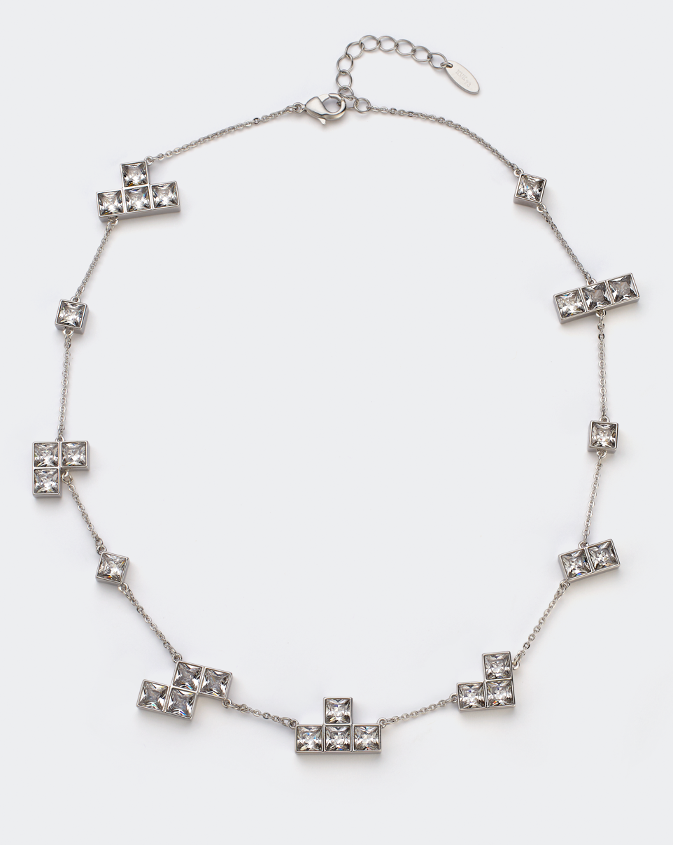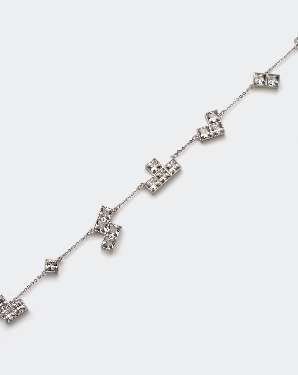 Kette in Messing, rhodiniert mit eckigen Zirkonia-Steinen.